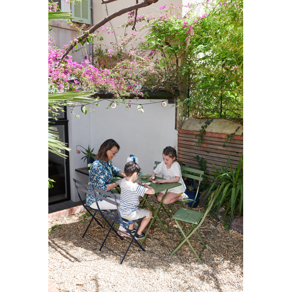 Anders dan bij namaak Bistro's, werd bij deze originele uitvoering van Fermob de poedercoating op authentieke wijze gedaan door een extra beschermlaag te geven tegen weer en wind. Dit maakt de originele Bistro niet enkel mooier, maar ook op vlak van duurzaamheid & bestendigheid.