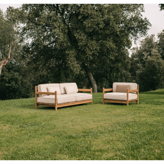 Calma lounge chair BRAVA 90dx100bx90h iroko en beige kussen
