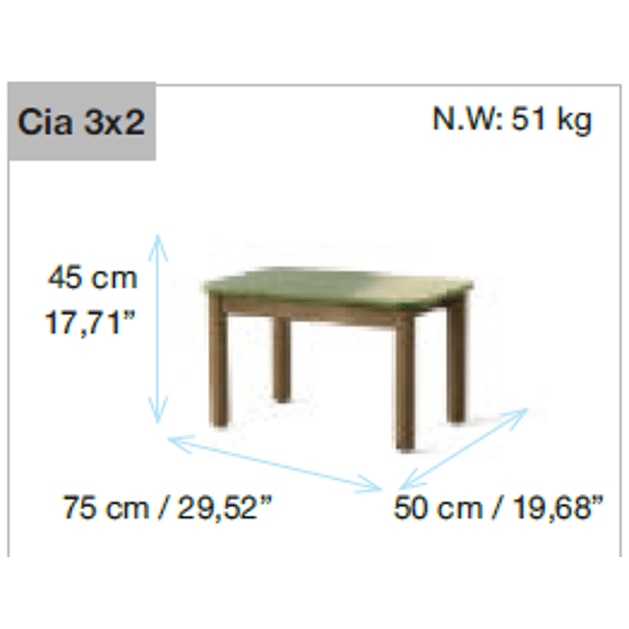 Calma salontafel 75x50x45cm hoog iroko of tegel top