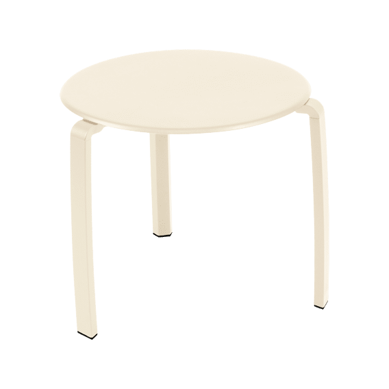 Lichtgewicht en stapelbaar, deze metalen tafel met een diameter van 48 cm en 3 poten is veelzijdig als krukje of stoeltje. Perfect voor buiten met zeer hoge bescherming en beschikbaar in diverse kleuren om elke ruimte te verlevendigen.
