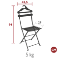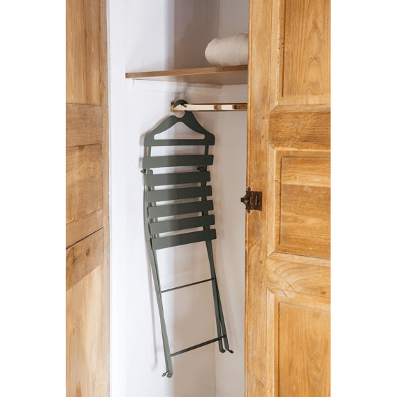 Het ontwerp blijft trouw aan de gekende Bistro-esthetiek: licht, opklapbaar, stevig en praktisch. De slanke lijnen, de poederlak in de typische Fermob-kleuren en het stalen frame zorgen voor dezelfde tijdloze eenvoud die past bij terrassen, balkons en compacte buitenruimtes. De Valet-versie brengt daar een extra laag bruikbaarheid bovenop, zonder in te boeten aan elegantie of comfort. Het is een stoel die zich zowel individueel als in combinatie met de Bistrotafels harmonieus laat inzetten.