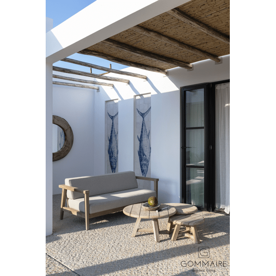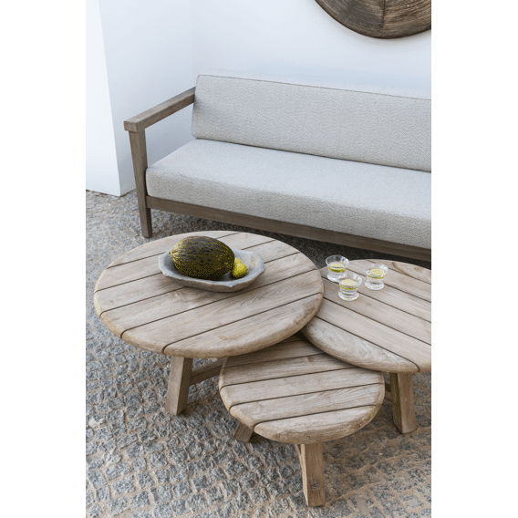Met de kenmerkende Gommaire ‘Reclaimed Teak’ afwerking combineren de Anton Trio tafels tijdloos design met duurzaamheid. Het massieve teak hout is bestand tegen weersinvloeden, waardoor deze set geschikt is voor buitengebruik. Door de verschillende hoogtes zijn de tafels praktisch inzetbaar als salontafel, bijzettafel of decoratief element.