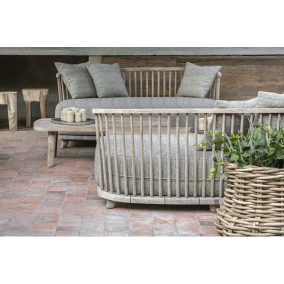 Materiaal: Teruggewonnen teak, natuurlijke grijze afwerking