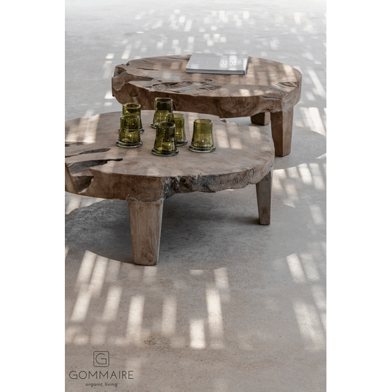 De Low Table Samba van Gommaire – Organic Living is een unieke salontafel die de schoonheid van de natuur weerspiegelt. Verkrijgbaar in vier maten – Small (Ø50 × H28 cm), Large (Ø50 × H35 cm), XL (Ø70 × H35 cm) en XXL (Ø90 × H35 cm) – biedt deze tafel veelzijdige mogelijkheden voor uw interieur of buitenruimte.
