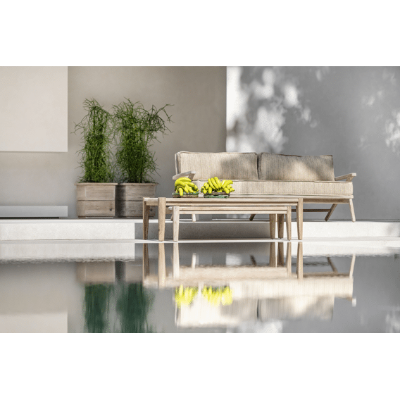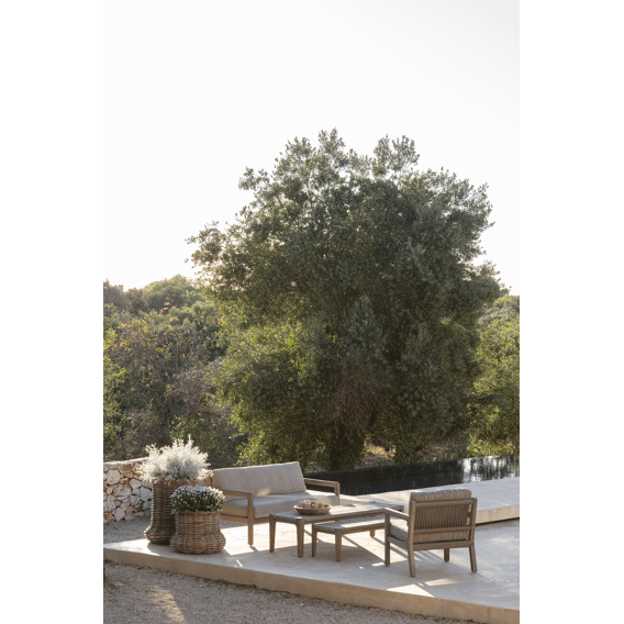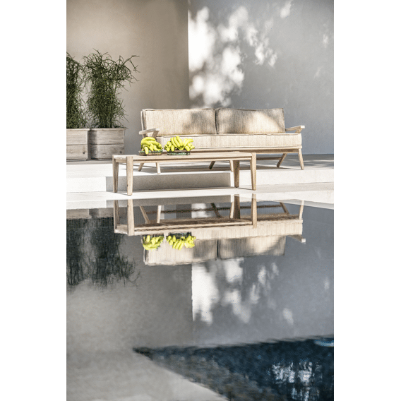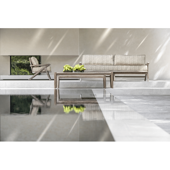 Gemaakt van teruggewonnen teak met een natuurlijke grijze afwerking, weerspiegelt de Rectangular tafel de duurzame en organische filosofie van Gommaire. De robuuste poten en het strakke ontwerp maken de tafel veelzijdig inzetbaar, zowel binnen als in overdekte buitenruimtes.