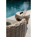 Met een diameter van 60 cm en een hoogte van 40 cm is de Root Ball ideaal voor buitengebruik: combineer met loungesets of buitenstoelen voor een stijlvolle zithoek op uw terras of veranda. De natuurlijke grijze tint met subtiele goud-oranje accenten geeft warmte en karakter aan elke buitenruimte.
