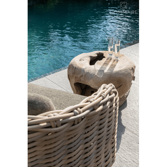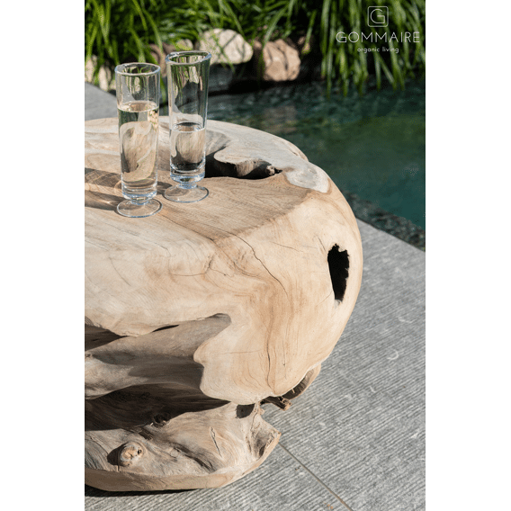 De Root Ball Coffee Table van Gommaire – Organic Living is een uniek buitenmeubel dat de natuurlijke schoonheid van teakhoutwortels benadrukt. Handgemaakt van gerecycled teakhout, heeft elke tafel een organische vorm die geen enkele andere tafel precies hetzelfde maakt.
