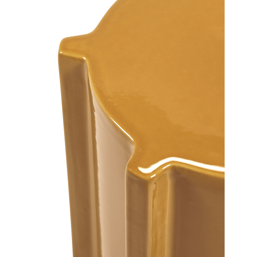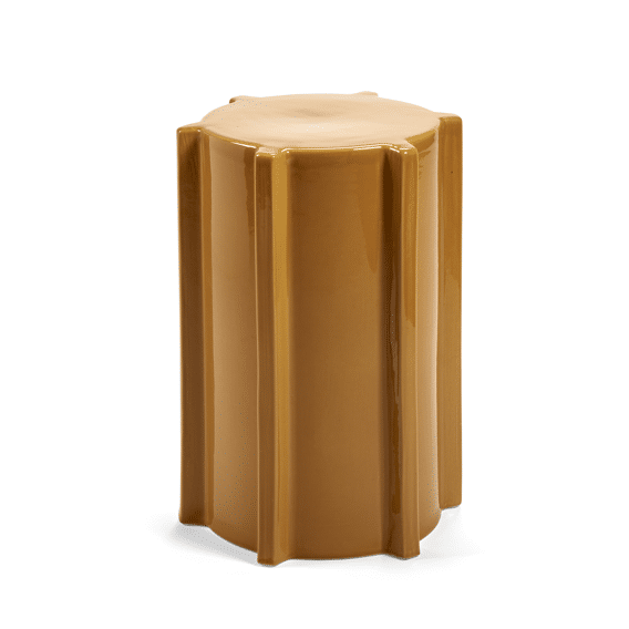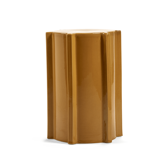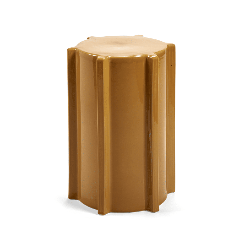 Vervaardigd uit geglazuurd steengoed in een levendige okerkleur, voegt deze bijzettafel of krukje 'Ocher Pawn' warmte toe aan je interieur. De horizontale ribbels maken het niet alleen visueel boeiend, maar bieden ook een functioneel element voor moeiteloos verplaatsen.
