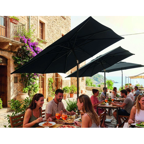 2m*2m, alu charcoal canopy dark grey van Soro umbrellas.