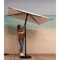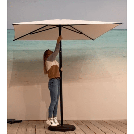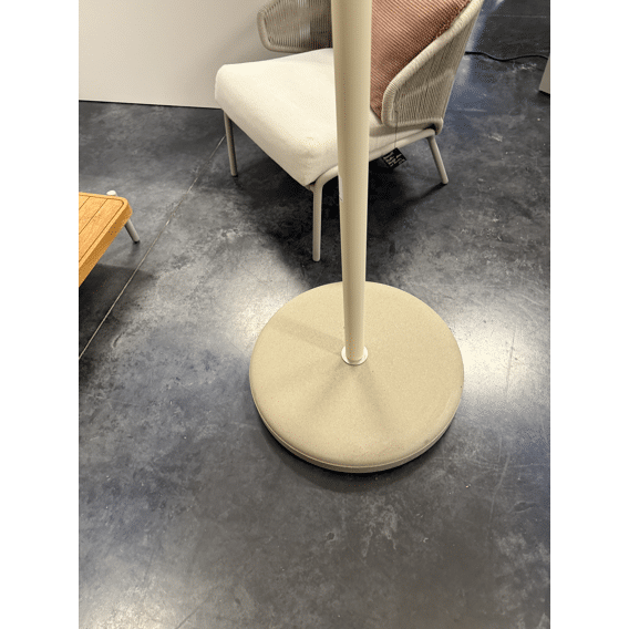 Nata is een mooie parasol in 100% ACRYL doek 260 gram !!!, met baleinen of ribben van 20 mm in zwart ral 9005 of beige ral 1013 limestone, de paal is dia 50mm ook in aluminium en de bediening is push-up maar zeer gemakkelijk voor iedereen toegankelijk. De voet is rond en dus verrijdbaar als een romeins wiel dia 58cm en weegt 60kg in twee kleuren beige of zwart en is een inwendige buis, welke veel mooier is. Kortom de mooiste en beste parasol in zijn klasse. De doos meet 231x18x18 en weegt 5 kg de voet doos meet 61x70x10cm en weegt 42 kg+ 60 kg . Desig en productie in België!! Garantie 2 en 10 jaar. Kan windsnelheid hebben tot 6 beaufort of 50km/u, Beschermhoes in optie, zie.